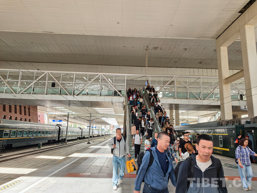 圖為拉薩火車站暑運(yùn)首日旅客在站臺乘車離藏