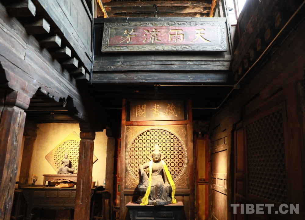 圖為位于四川省甘孜州鄉(xiāng)城縣青德鎮(zhèn)布機村的宗薩木府客廳中懸掛的“天雨流芳”匾 攝影:劉莉