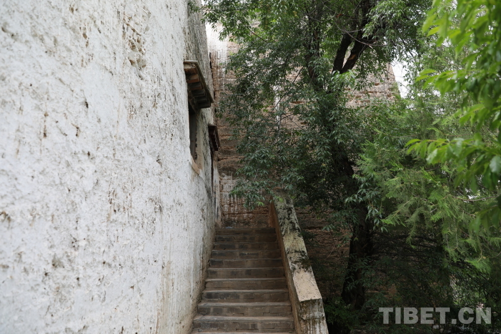 圖為位于四川省甘孜州鄉(xiāng)城縣青德鎮(zhèn)布機村的宗薩木府樓梯與旁邊的老山桃樹 攝影:劉莉