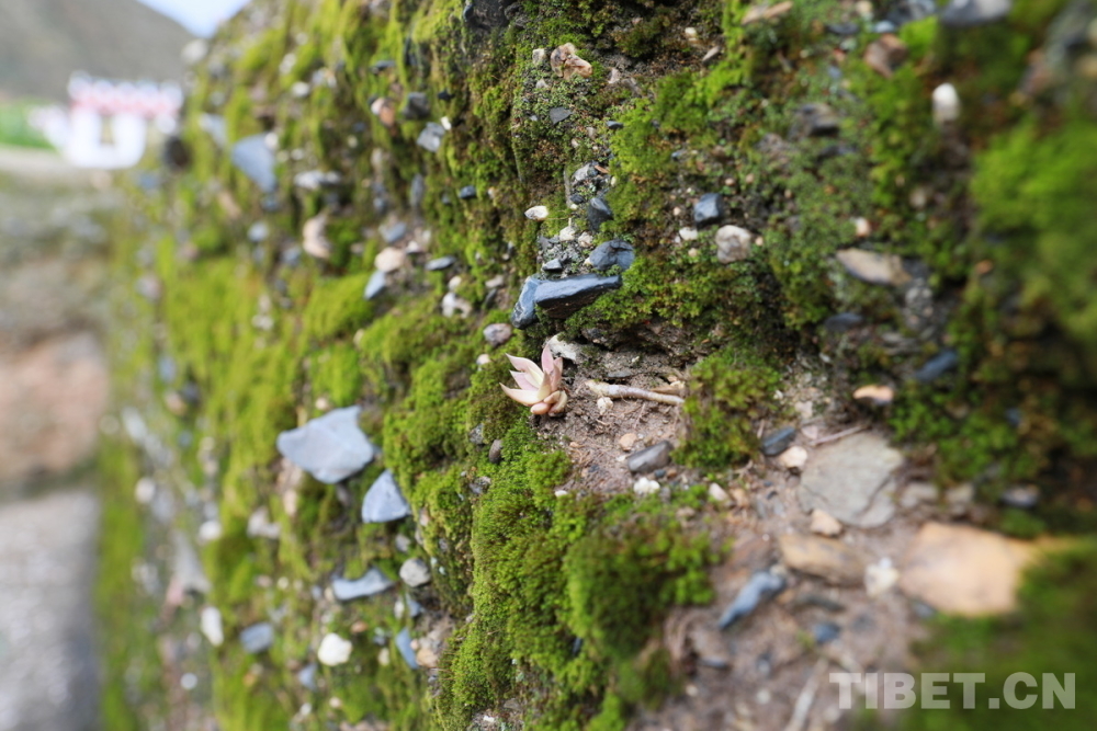 圖為位于四川省甘孜州鄉(xiāng)城縣青德鎮(zhèn)布機村的宗薩木府的古老夯土女兒墻滿覆青苔 攝影:劉莉