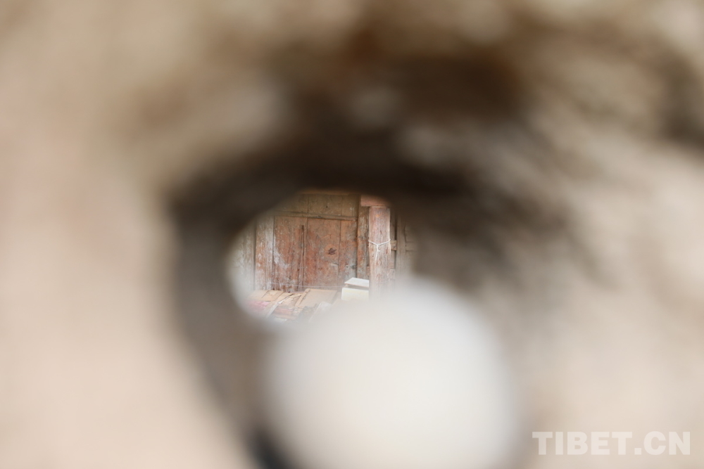 圖為位于四川省甘孜州鄉(xiāng)城縣青德鎮(zhèn)布機村的宗薩木府的古老夯土女兒墻上存留著正對大門的射擊孔,這樣的射擊孔還有多處,是當年這座高大建筑的安保系統(tǒng) 攝影:劉莉