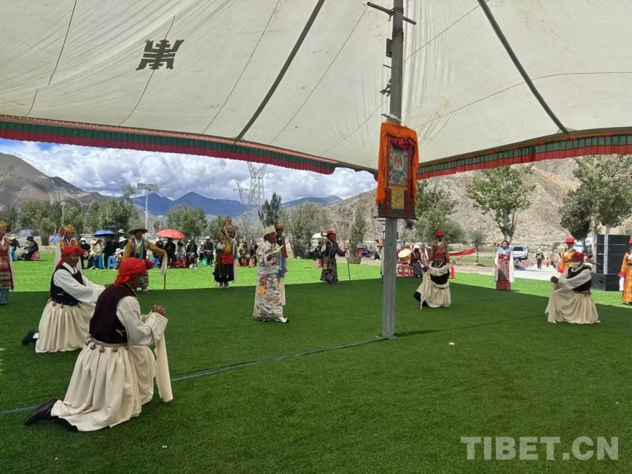 圖為日喀則南木林縣非遺林公園內(nèi)的湘巴藏戲展演