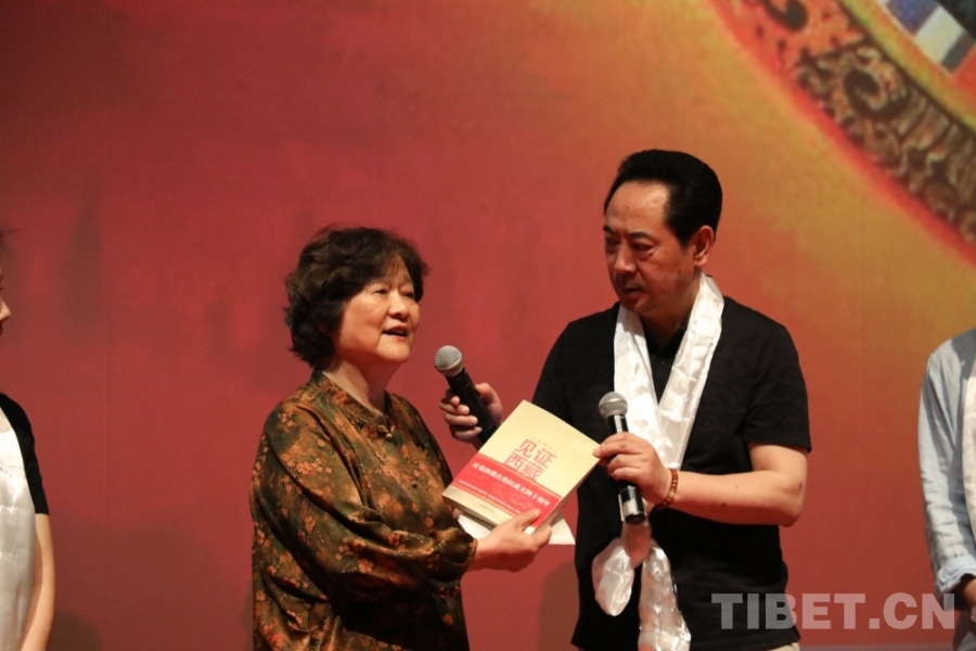 中國(guó)藏學(xué)出版社原總編輯、作家馬麗華表示,自己還沉浸在電影的情節(jié)里,“我覺(jué)得這部電影太好了,讓人非常感動(dòng)。革命建設(shè)事業(yè)要薪火相傳,希望大家都能來(lái)重溫這段歷史。”她特意帶來(lái)西藏自治區(qū)成立四十周年時(shí),由西藏自治區(qū)政府歷任主席共同撰寫的《見(jiàn)證西藏》一書,其中就有天寶所寫的《西藏十二載 一生不了情》。他在文中深情地說(shuō):“我的一切都是黨給的,就連我天寶這個(gè)名字,也是毛主席給我起的”。