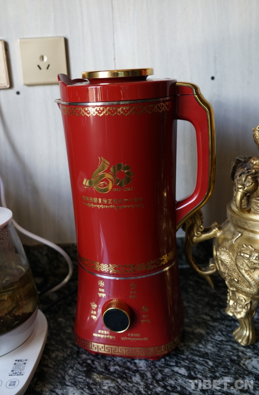 圖為西藏自治區(qū)成立60周年中央代表團(tuán)贈(zèng)送的紀(jì)念品——全自動(dòng)酥油茶壺 攝影:巫姍燕