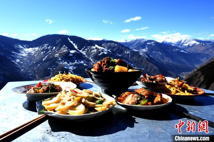 最近,有一段視頻在網(wǎng)上流傳:拍攝地點(diǎn)在四川省阿壩州小金縣老營(yíng)鄉(xiāng)麻足寨,海拔3200米。畫面里,整潔的餐桌上擺著美食,浮云飄在身后,青山藍(lán)天盡收眼底,遠(yuǎn)處的雪山躲在云海后忽隱忽現(xiàn)。