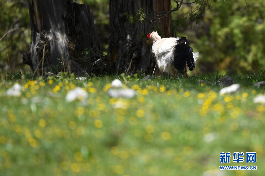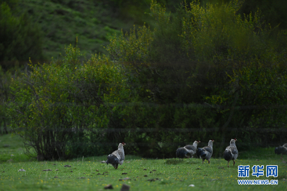 幾只白馬雞在囊謙縣吉尼賽鄉(xiāng)河谷的山坡上覓食。(6月20日攝)新華網 潘彬彬 攝