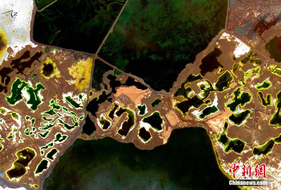 青海鹽湖的衛(wèi)星視角:星羅棋布宛如碧玉