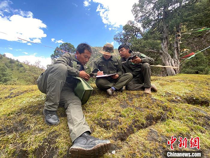 圖為9月9日,管護(hù)員們記錄巡護(hù)監(jiān)測情況。 中新社記者 李江寧 攝