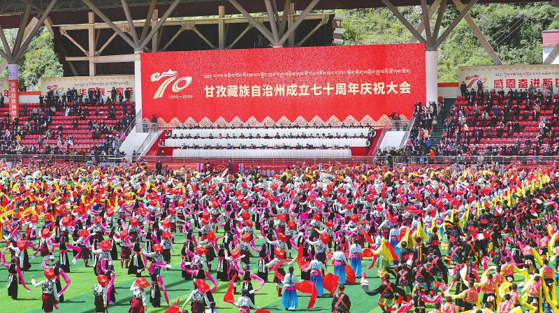 四川甘孜藏族自治州建州70周年慶祝大會17日在康定市舉行?!⒅铱?攝