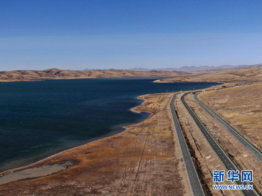 10月30日在青海省果洛藏族自治州瑪多縣境內拍攝的一處湖泊(無人機照片)。新華社記者 張龍 攝