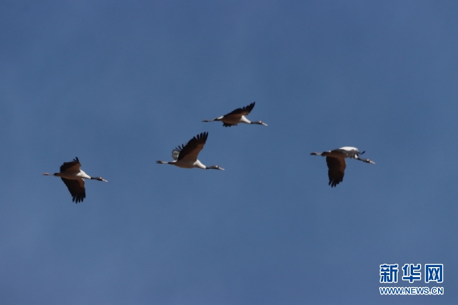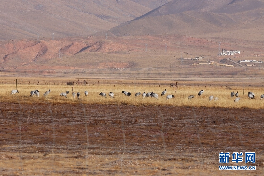 集群黑頸鶴和灰鶴。新華網(wǎng)發(fā)