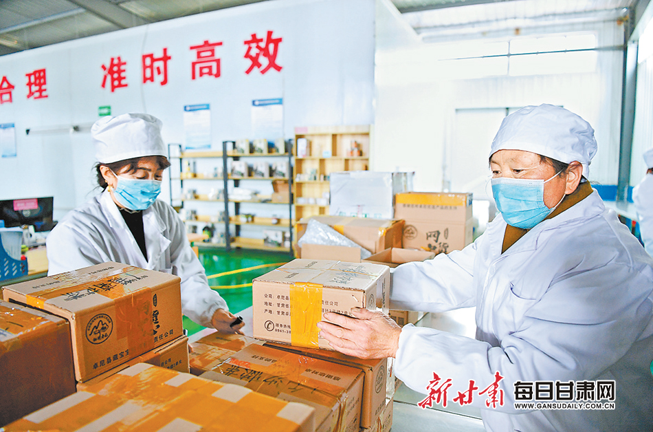 卓尼縣農(nóng)村電商物流公共服務(wù)中心分揀區(qū)工人正忙著分揀貨物。