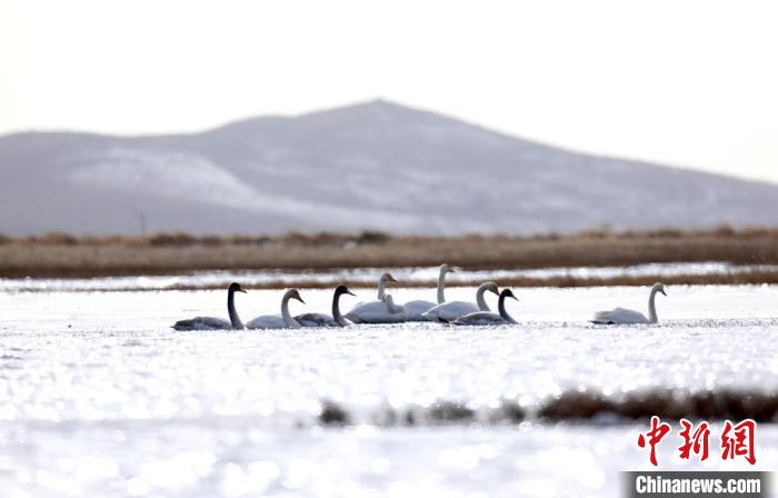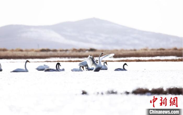 連日來,隨著氣溫下降,成群的野生大天鵝陸續(xù)飛臨四川省阿壩州若爾蓋縣高原小鎮(zhèn)麥溪鄉(xiāng)的洛賈瓊果河棲息越冬。近百只天鵝在偌大的湖面上自由自在地覓食嬉戲,一會兒在天空翱翔,一會兒又成群結(jié)隊地在湖面上追逐,描繪出一幅冬日天鵝湖的美麗景象。洛賈瓊果河因地?zé)岷铀K年不結(jié)冰,這也為國家二級保護動物大天鵝越冬創(chuàng)造了良好環(huán)境。
