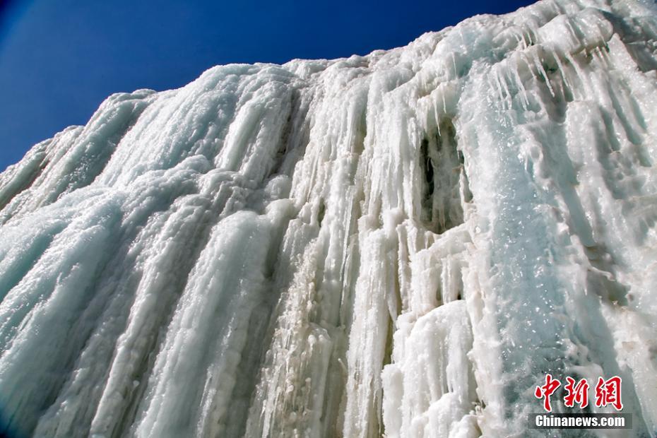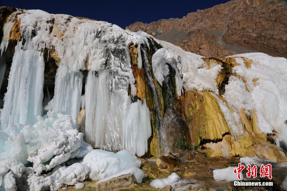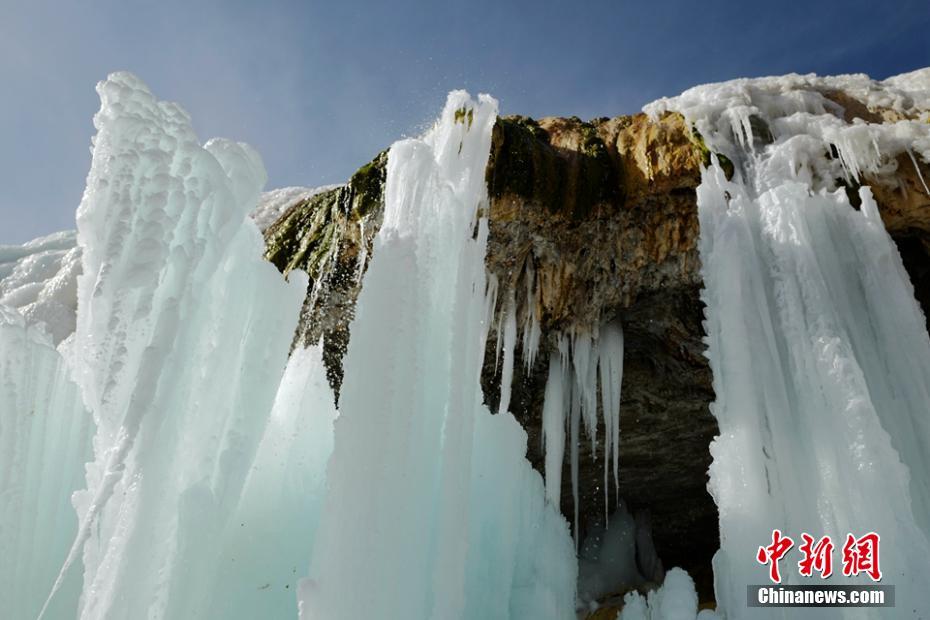 2021年1月23日,祁連山國家公園崗什卡雪峰山腳下的七彩冰瀑,由于溪水中含有多種礦物質(zhì),在冬日暖陽的照耀下,散發(fā)出五彩繽紛的綺麗風(fēng)光,蔚為壯觀。中新社發(fā) 成 林 攝