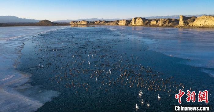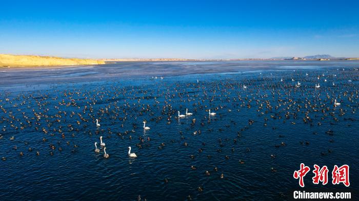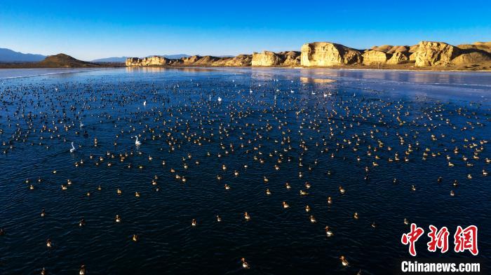 圖為上萬(wàn)只野生鳥類在湖中游蕩。烏席勒 攝