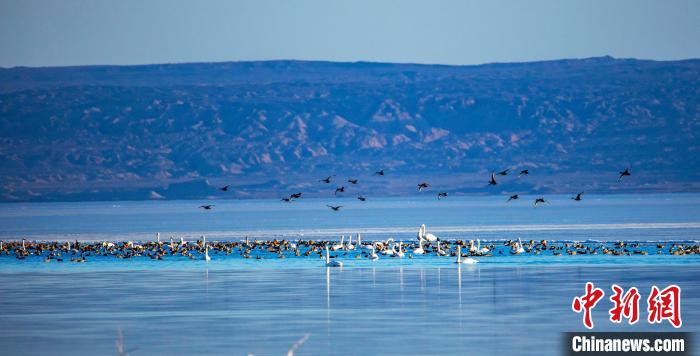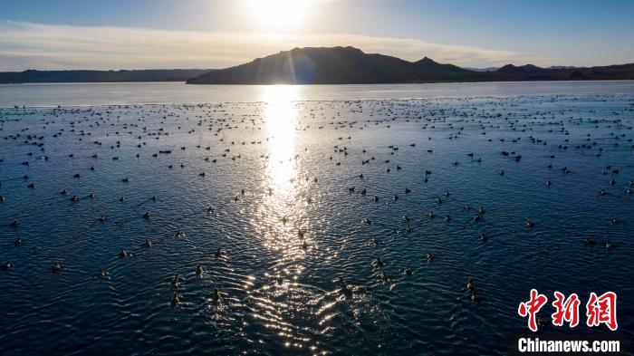 圖為上萬(wàn)只野生鳥類在湖中嬉戲。烏席勒 攝