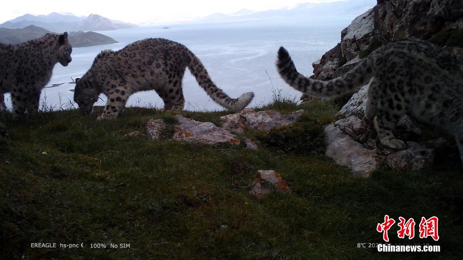 圖為相機(jī)抓拍到多只雪豹活動畫面。 青海原上草自然保護(hù)中心供圖