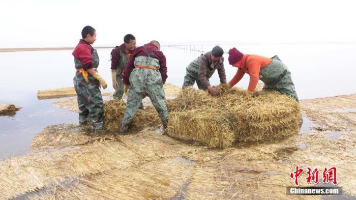 資料圖為智華等在青海湖畔為黑頸鶴制作人工巢。 中新社發(fā) 智華 供圖