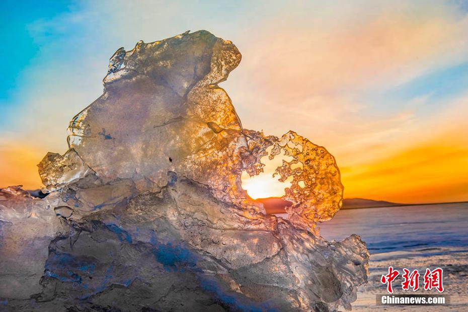 湖面上隆起的冰塊也在夕陽(yáng)照射下波光粼粼,勾勒出一幅絕美畫卷。趙海梅 攝
