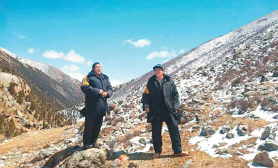 玉樹(shù)藏族自治州囊謙縣白扎林場(chǎng)護(hù)林員在巡護(hù)。姜峰 攝