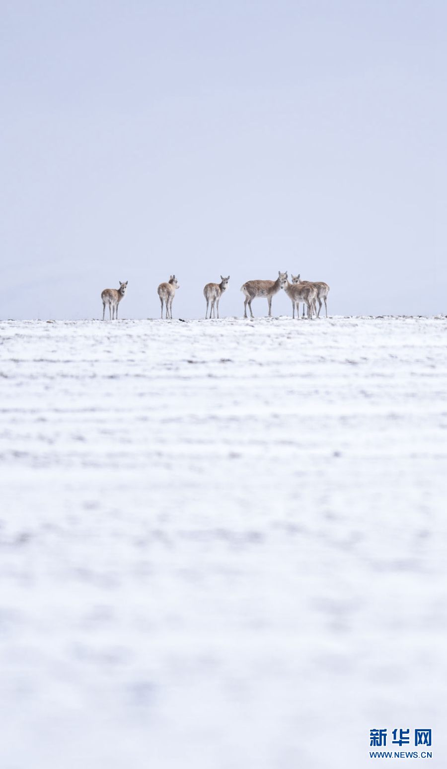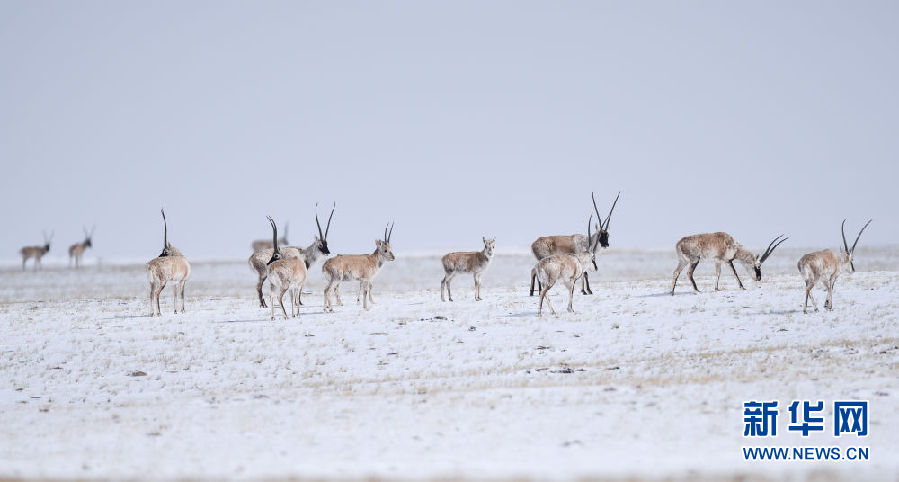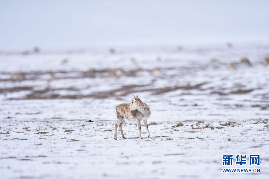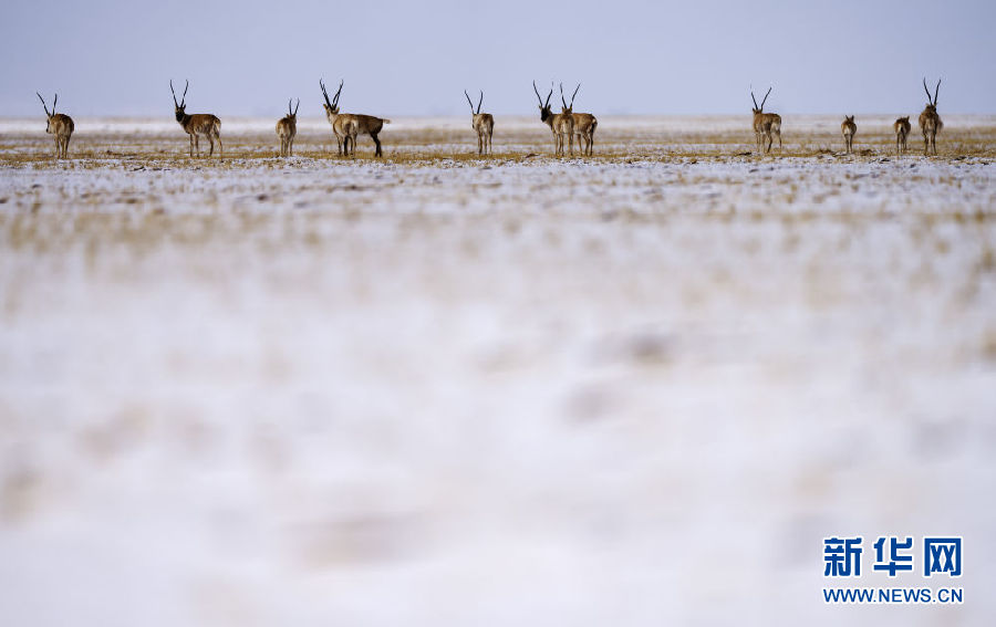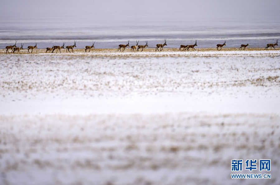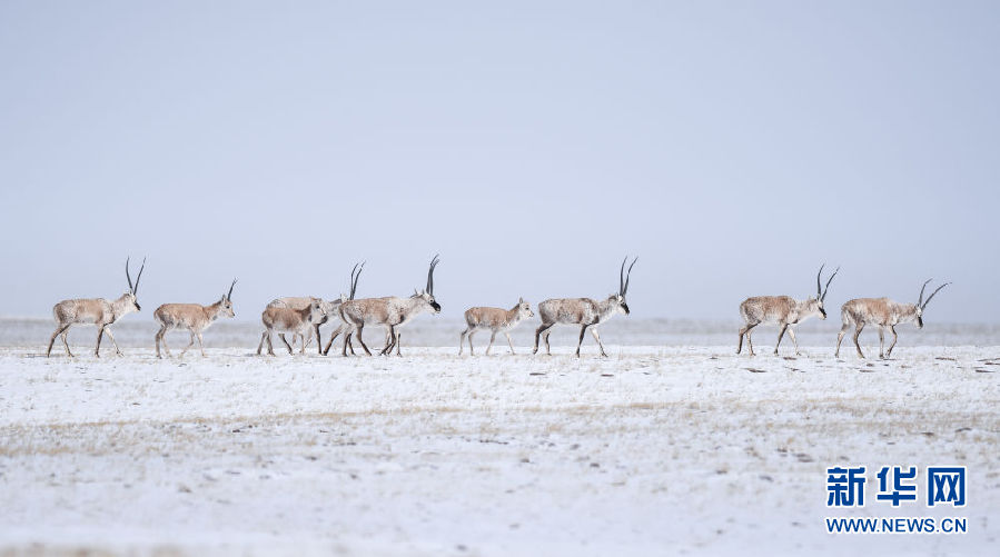近日,可可西里迎來降雪,大量藏羚羊匯聚在可可西里五道梁地區(qū),踏上遷徙之路。