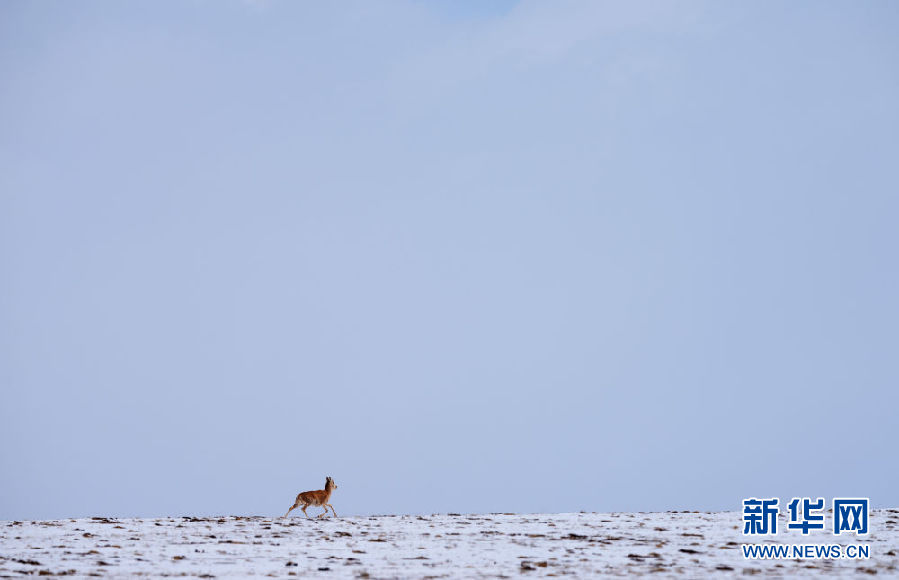 4月20日,一群遷徙藏羚羊在雪地上留下腳印。新華社記者 吳剛 攝