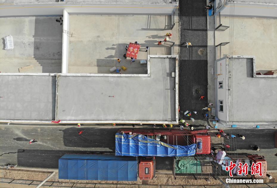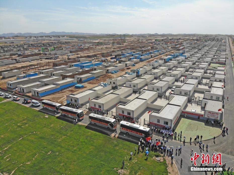 8月7日,甘肅省舟曲縣首批60戶289名地質(zhì)災(zāi)害避險搬遷村民到達蘭州新區(qū)并入住。甘肅舟曲縣啟動地質(zhì)災(zāi)害避險搬遷工作,第一批次60戶289人集中告別故土,乘車前往數(shù)百公里之外的蘭州新區(qū)。(無人機拍攝) 中新社記者 楊艷敏 攝