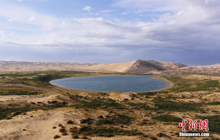 9月27日,航拍青海省海北藏族自治州海晏縣關(guān)停的青海湖沙島景區(qū)內(nèi)的太陽湖。(無人機(jī)照片) 中新社記者 馬銘言 攝