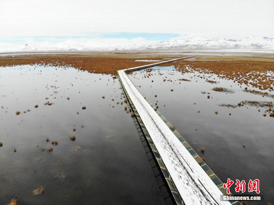 10月20日,四川省阿壩州若爾蓋大草原雪后銀裝素裹。從19日晚間起,若爾蓋縣境內(nèi)迎來降雪,花湖生態(tài)旅游區(qū)被皚皚白雪覆蓋,美輪美奐?;ê屈S河(若爾蓋段)的重要水源涵養(yǎng)地,也是若爾蓋濕地國家級自然保護(hù)區(qū)的“實(shí)驗(yàn)區(qū)”的一部分,自保護(hù)工作開展以來,花湖自然水位提高30厘米,濕地湖泊面積從原來的215公頃擴(kuò)大到650公頃,恢復(fù)湖泊周邊半沼澤和干沼澤892公頃。