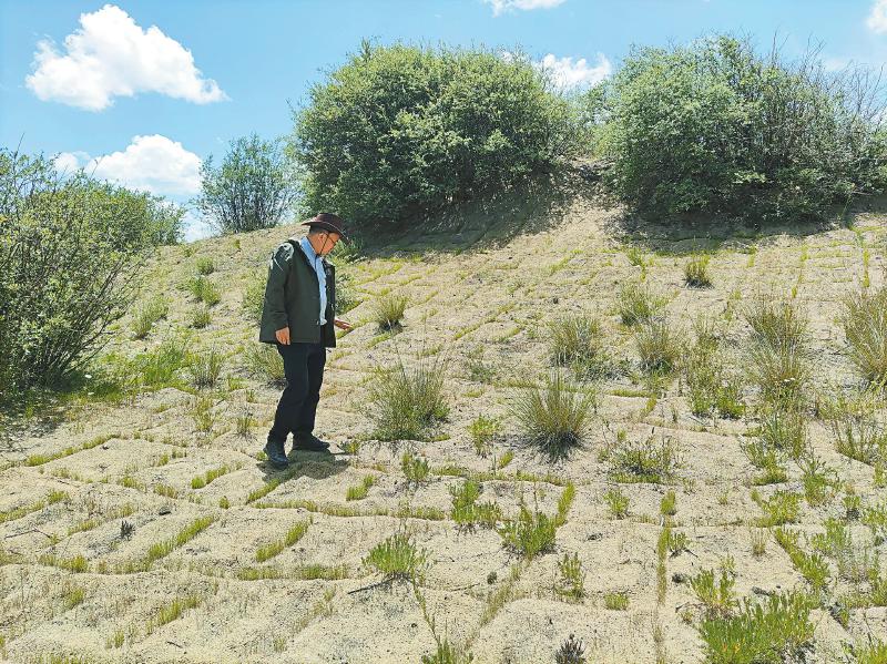 鄢武先察看沙障情況。圖片均由受訪(fǎng)者提供