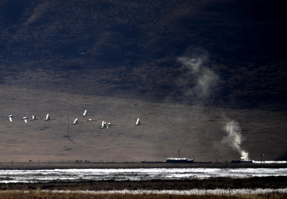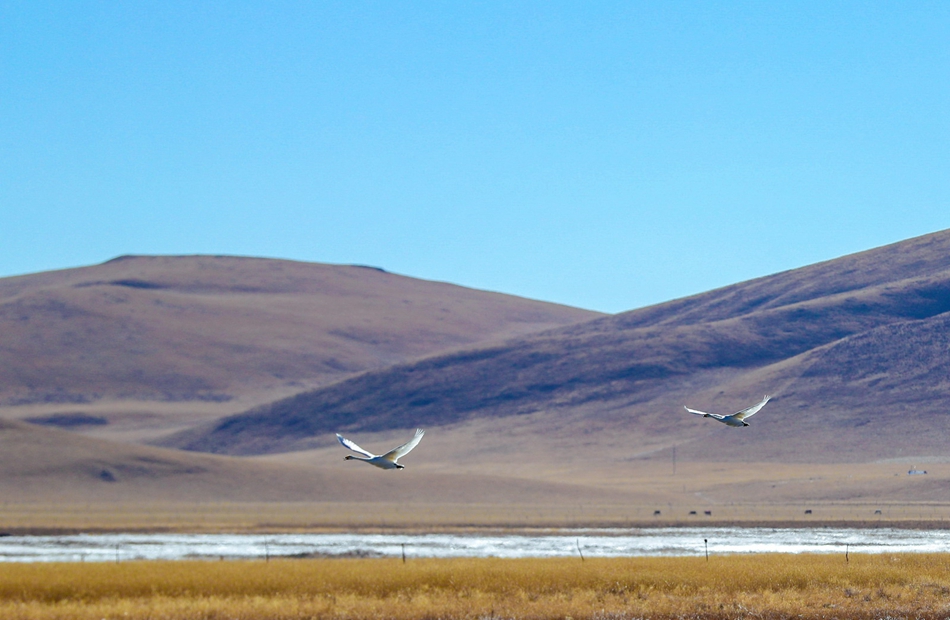 “碌曲縣依托“黃補(bǔ)”區(qū)項(xiàng)目先后將湖邊的尕海鎮(zhèn)、鎮(zhèn)屬機(jī)關(guān)單位遷移出了核心區(qū),將居住在尕海湖邊的牧民群眾實(shí)施了整村搬遷,有效減緩了對(duì)侯鳥(niǎo)的干擾。”甘肅尕海則岔國(guó)家級(jí)自然保護(hù)區(qū)管護(hù)中心尕海保護(hù)站站長(zhǎng)香毛吉說(shuō),隨著尕海濕地生態(tài)的持續(xù)改善,為大天鵝提供了穩(wěn)定的越冬水位、豐富的濕地食物,在尕海境內(nèi)越冬的大天鵝數(shù)量逐年增加。
