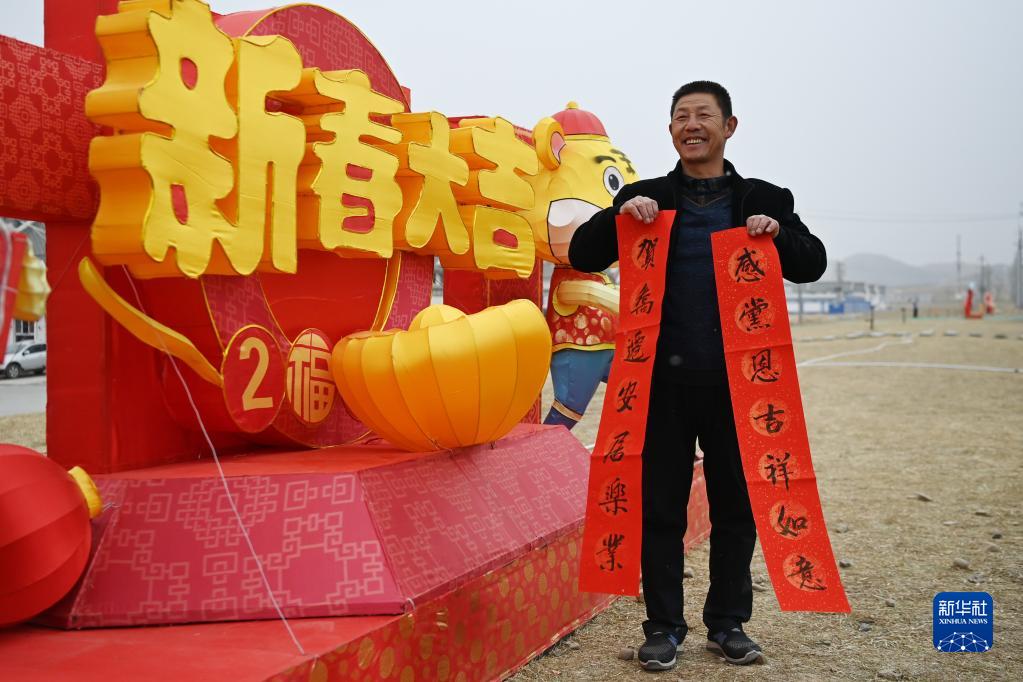 1月25日,在蘭州新區(qū)舟曲避險搬遷安置點(diǎn),搬遷群眾展示領(lǐng)取的春聯(lián)。新華社記者 范培珅 攝