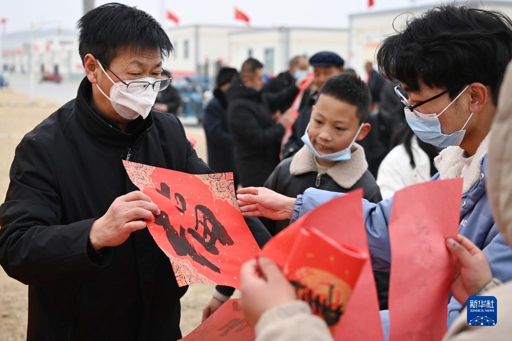 1月25日,在蘭州新區(qū)舟曲避險搬遷安置點(diǎn),舟曲地質(zhì)災(zāi)害避險搬遷第一臨時黨支部組織書法家給搬遷群眾送春聯(lián)。新華社記者 范培珅 攝