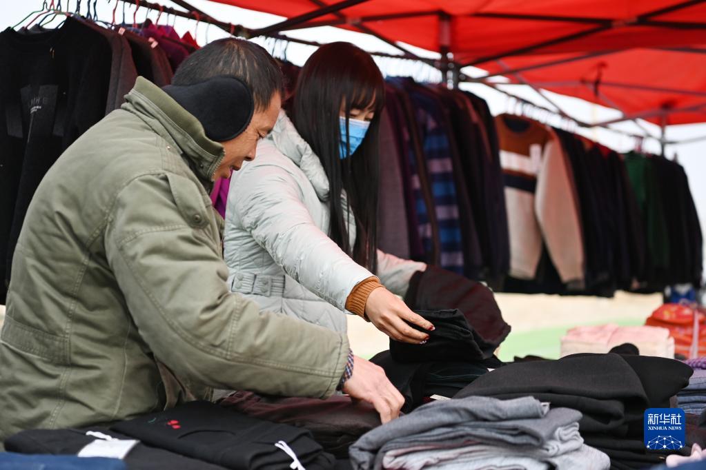 1月25日,在蘭州新區(qū)舟曲避險搬遷安置點(diǎn),搬遷群眾置辦年貨。新華社記者 范培珅 攝