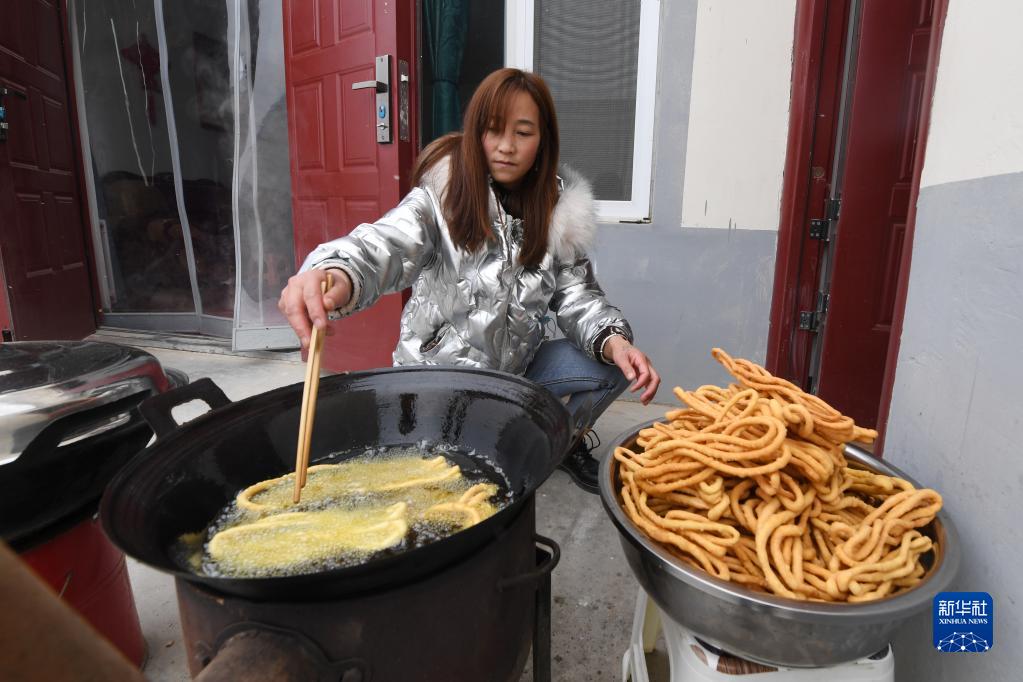 1月25日,在蘭州新區(qū)舟曲避險搬遷安置點(diǎn),搬遷群眾制作美食。新華社記者 范培珅 攝
