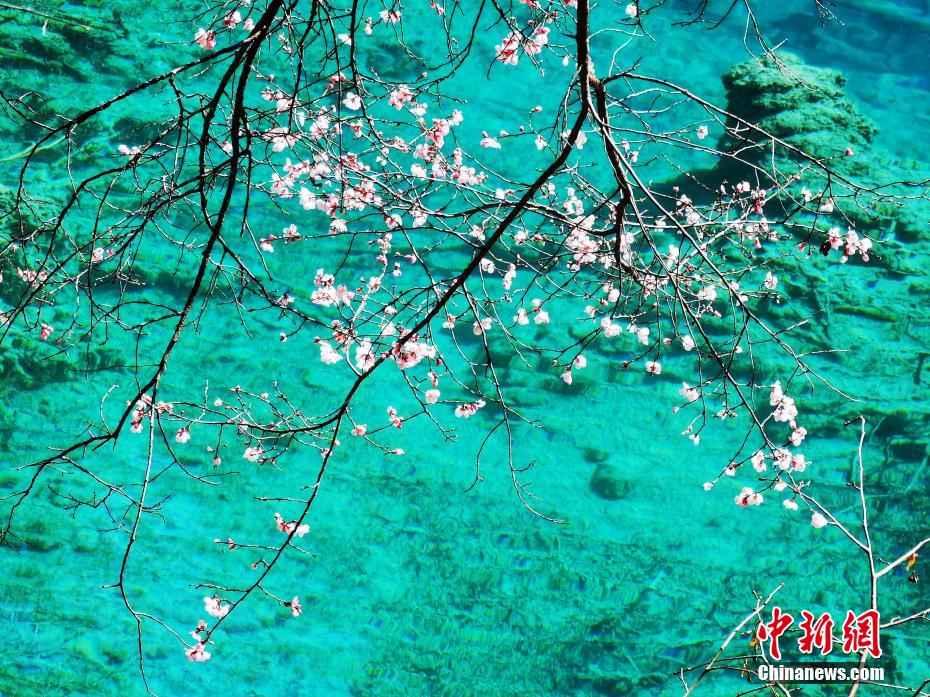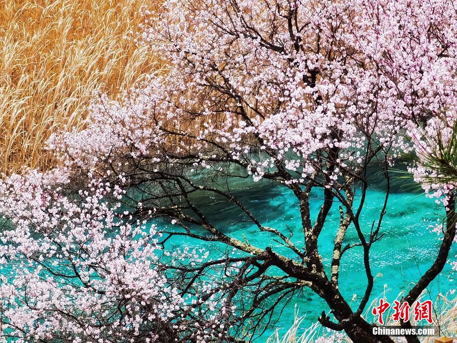 3月的九寨溝春回大地,暖陽怡人,遍布河谷、湖畔、山腰的九寨扁桃花迎風(fēng)綻放,花期正當(dāng)時。梁楓 攝