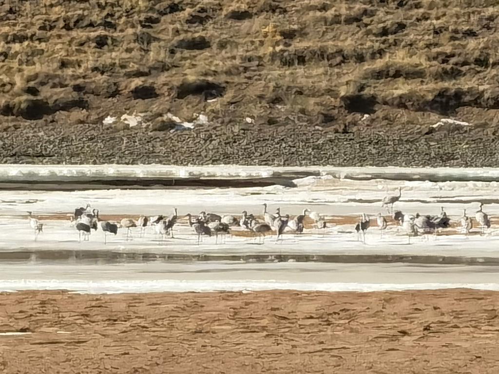 幾百只灰鶴齊聚柴達(dá)木盆地可魯克湖