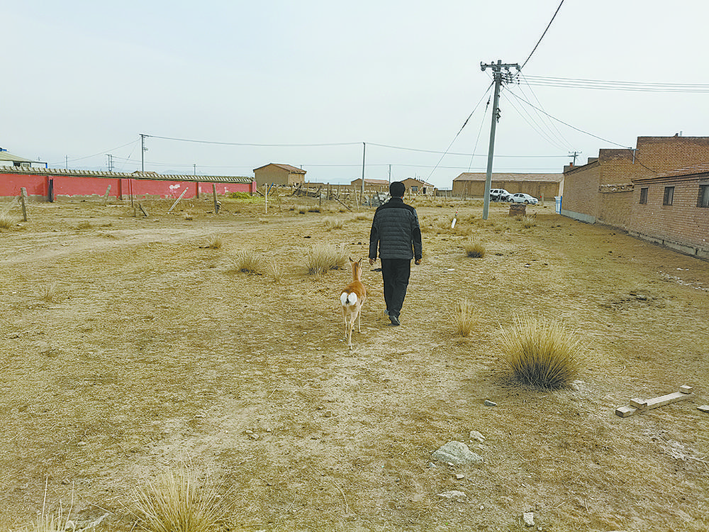 半個(gè)多月來,盡管我們已經(jīng)習(xí)慣了目睹一只普氏原羚與牧人形影不離的場(chǎng)景,但每當(dāng)凝望那片草色枯黃的原野,牧人周增本無論走向何處,一只小原羚總是在6、7米外不緊不慢地跟隨著他,心里便會(huì)涌起一種無以名狀的感動(dòng),不禁令人熱淚盈眶。