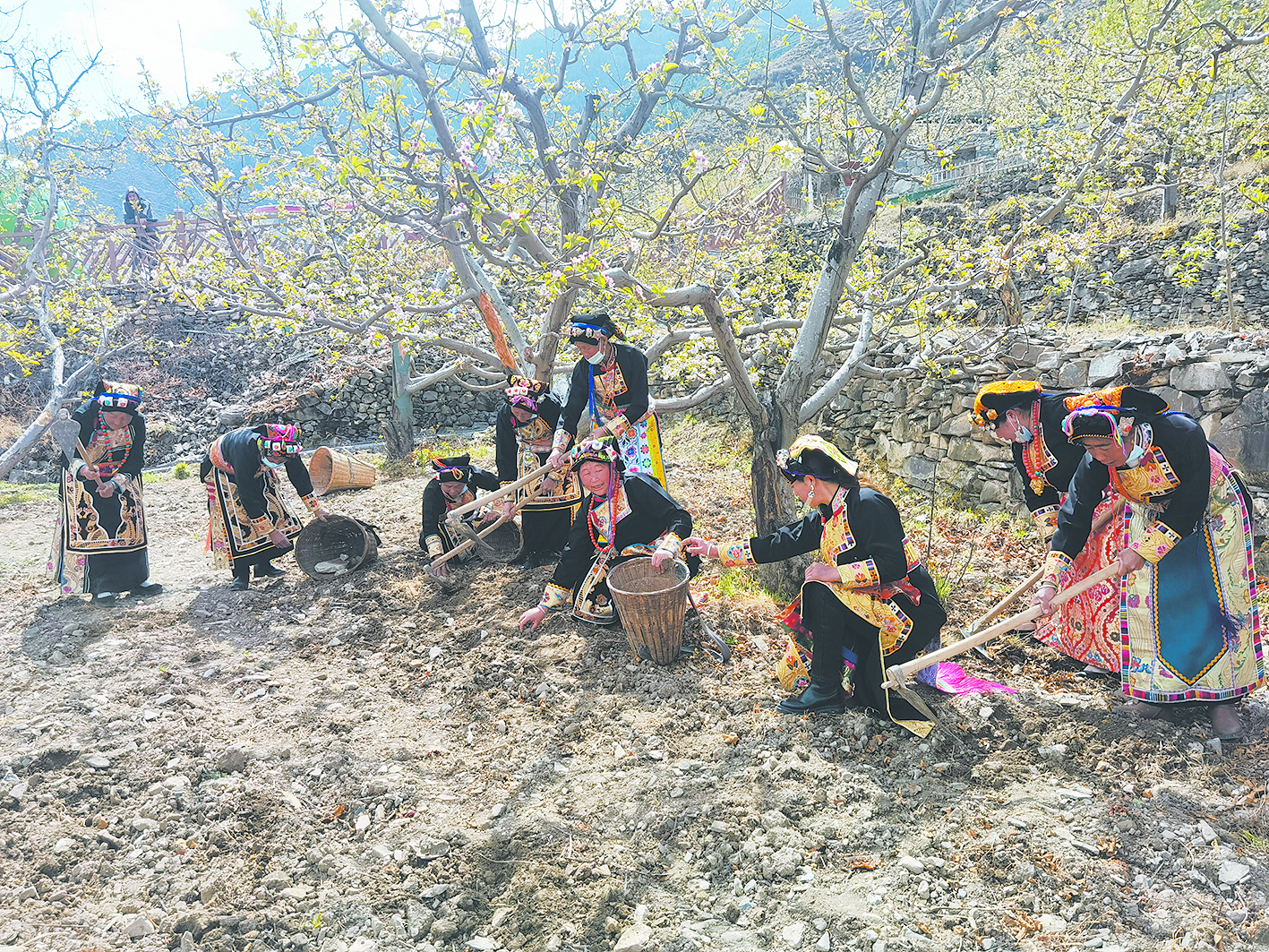 “老百姓看到蘋果花就看到了希望,期待蘋果產(chǎn)量高,品質(zhì)更好,能賣個好價錢,讓我們的日子越來越紅火?!贝迕裰鞂W燕邊忙碌邊告訴記者。眼下正是蘋果樹急需補充營養(yǎng)的時候,同朱學燕一般,在蘋果樹下,村民們正忙著施肥、松土、拔草、澆水。