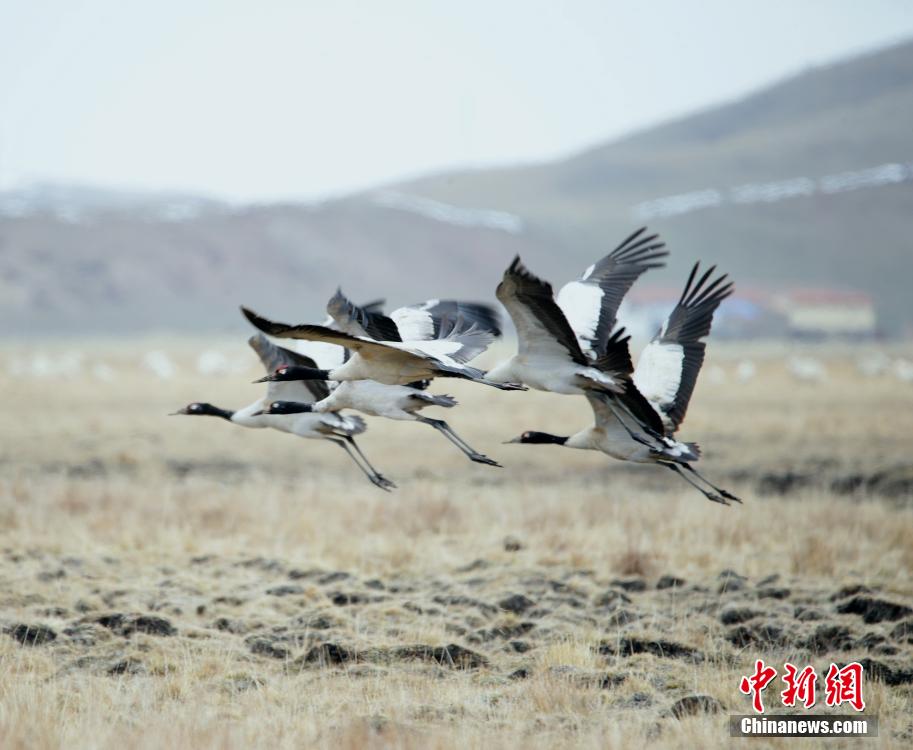 近日,百余只黑頸鶴集群在四川省阿壩藏族羌族自治州若爾蓋國(guó)家級(jí)自然保護(hù)區(qū)熱曲河畔追逐、休憩,它們將在這里慢慢建立各自的領(lǐng)域并進(jìn)入繁殖期。春季,是各種越冬鳥(niǎo)兒返回繁殖地的季節(jié)。在四川若爾蓋國(guó)家級(jí)自然保護(hù)區(qū)內(nèi),2000余只黑頸鶴,由以前的候鳥(niǎo)變成了留鳥(niǎo),在當(dāng)?shù)囟ň拥?1月后離開(kāi),目前已進(jìn)入繁殖期。