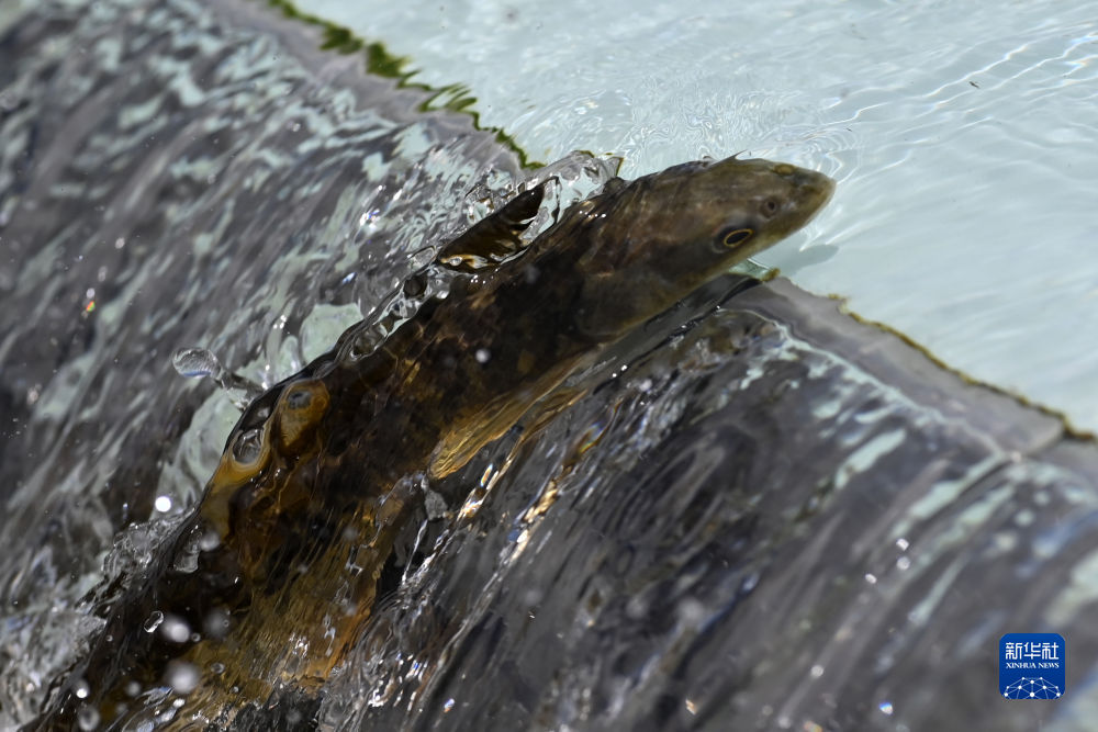 6月30日,泉吉河中的一群湟魚(yú)正在逆流洄游。新華社記者 范培珅 攝