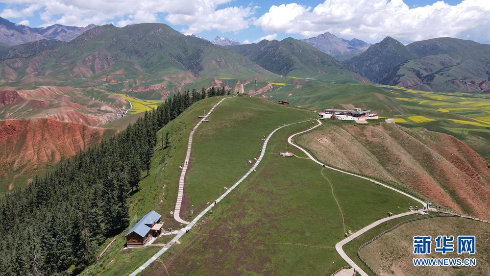 盛夏時(shí)節(jié),青海省海北藏族自治州祁連縣的卓爾山景區(qū)綠意盎然,風(fēng)景如畫。