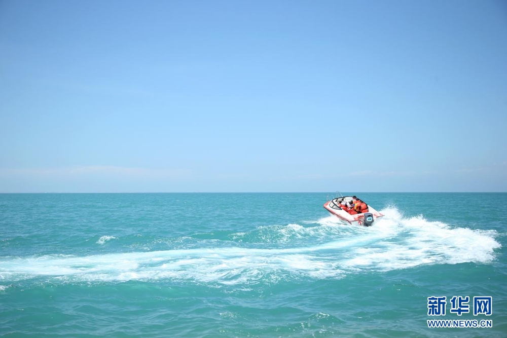 8月8日,游客在青海湖體驗(yàn)水上娛樂項(xiàng)目。新華網(wǎng) 馬洪婷 攝