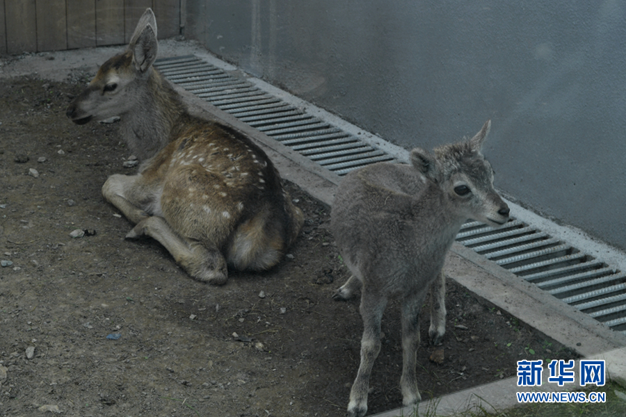 圖為祁連山國家公園青海片區(qū)野生動物救護(hù)繁育中心內(nèi)救助的馬鹿(左)和巖羊。新華網(wǎng) 卡婭梅朵 攝