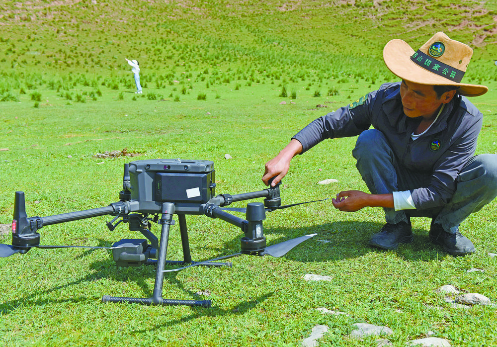 管護員開展無人機巡護前對無人機進行檢查。