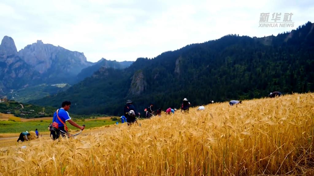 甘肅省舟曲縣:白龍江畔麥浪翻滾收割忙