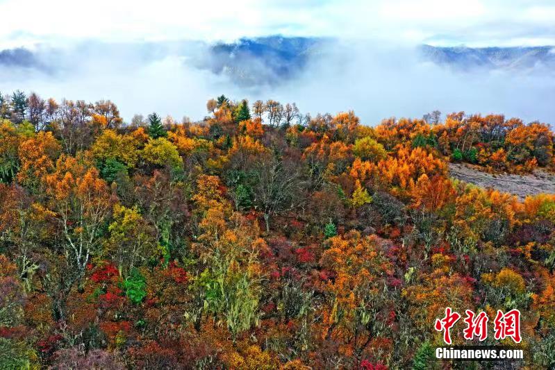 深秋時(shí)節(jié),四川馬爾康市馬爾康鎮(zhèn)阿底村賽馬山迎來彩林觀賞的最佳季節(jié)。放眼望去,海拔3500米的賽馬山上彩林連綿延伸至茫茫云海,遠(yuǎn)方雪山四面環(huán)繞,宛如仙境一般。阿壩州文體旅游局供圖