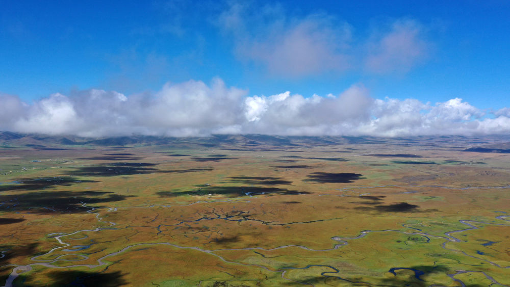 深秋,從空中俯瞰平均海拔3500多米的瑪曲濕地,大大小小的湖泊如珍珠般灑落在草原上,上萬(wàn)只候鳥在這里安心度過繁殖季,準(zhǔn)備飛往南方過冬。