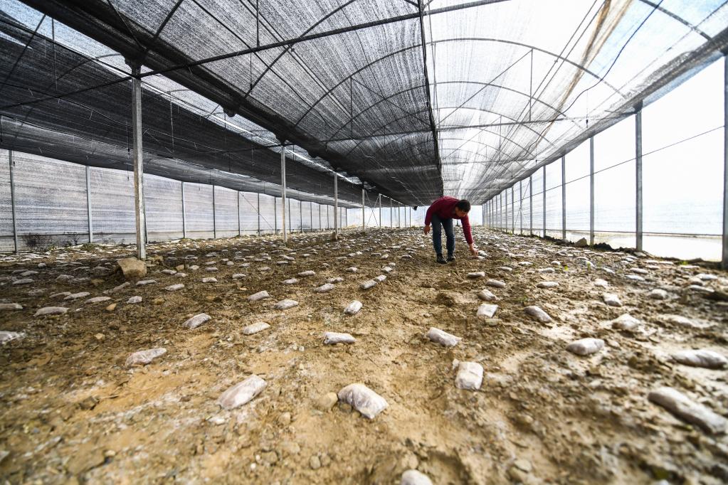 2月9日,克枯村村民余祥在大棚里查看羊肚菌的長勢。新華社記者 王曦 攝