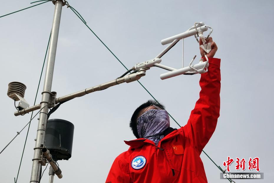 圖為第二次青藏科考隊員、中科院空天院博士生周丁旺在觀測站開展科研設(shè)備維護工作。孫自法 攝